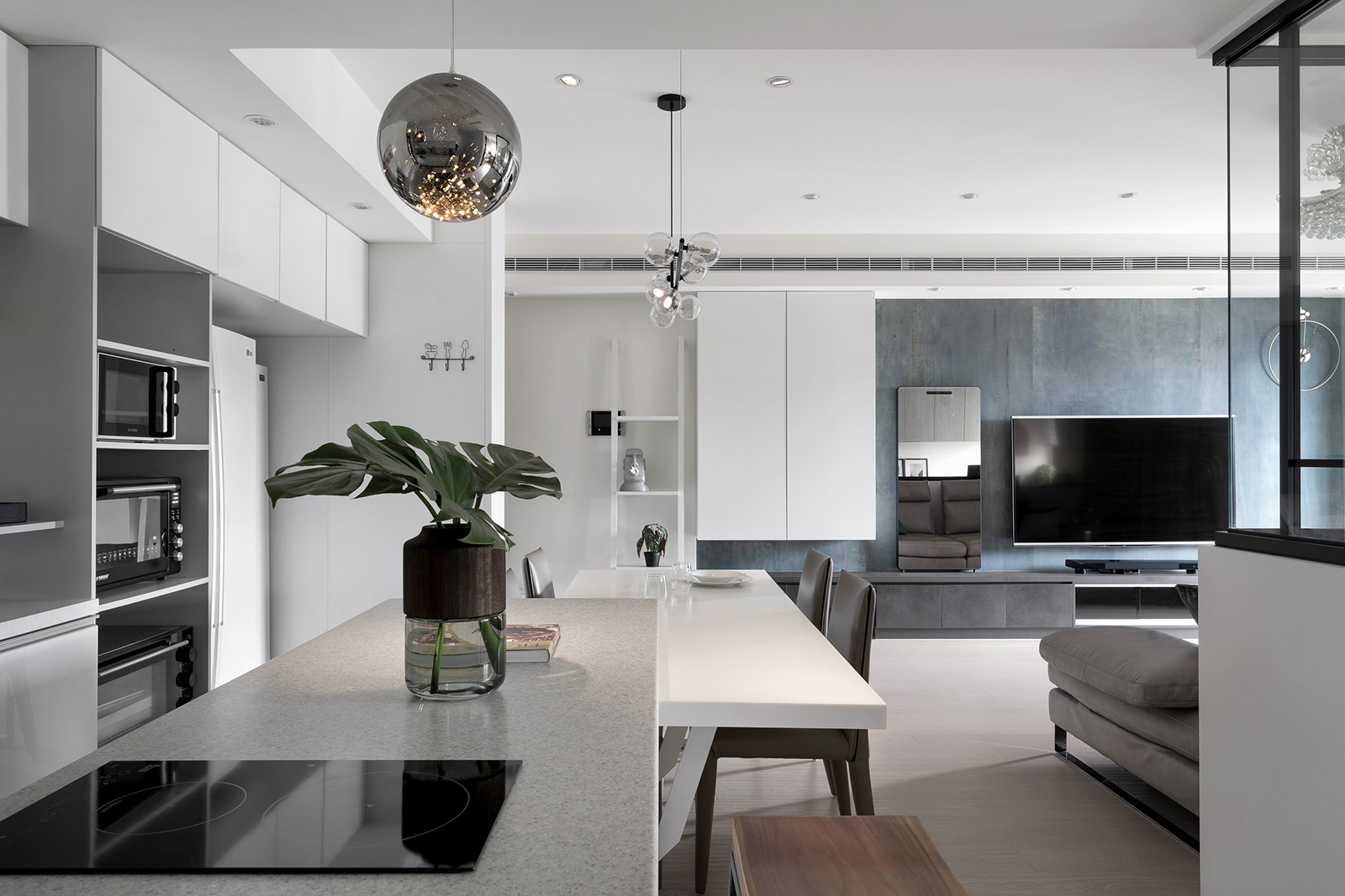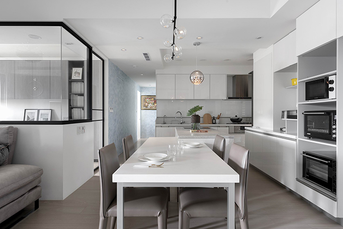 採用開放式廚房,讓大中島吧檯成為家的一個中心, 聯接廚房餐廳客廳,女主人和朋友可以自在的製作糕點