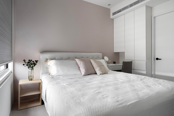 主臥房,以溫馨明亮,油漆跳色